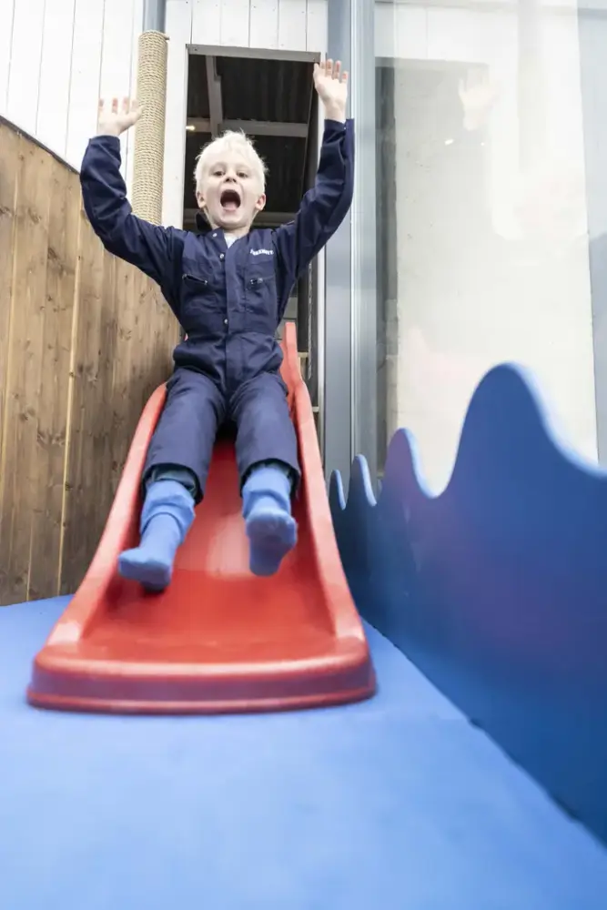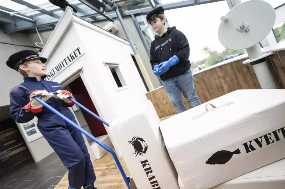 La barna utfolde seg i vår populære lekekrok på Kystmuseet - Fiskemottaket. Her er det utkledningsklær, fiskekasser og en leketavle. Passer godt for barn i alderen 2-12 år.