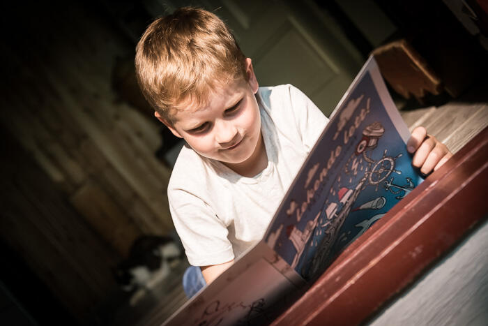 Utforsk utstillingen med arbeidsheftet vårt "Lekende lett". Her kan barna fargelegge, løse oppgaver eller gå på jakt etter de skjulte russiske matrosene! En premie venter den som klarer alle oppgavene.