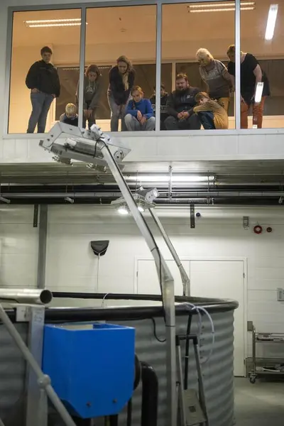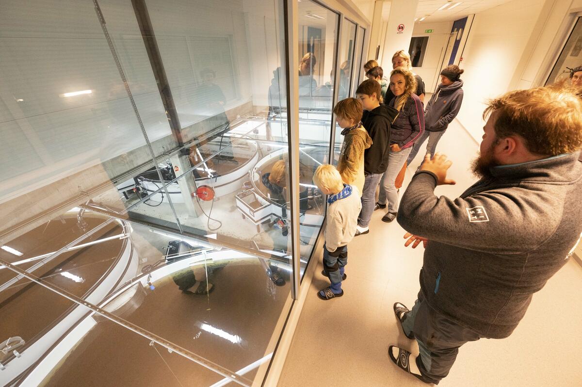 I løpet av omvisningen forteller og viser våre formidlere igjennom store panoramavinduer hvordan daglig stell, fôring og vaksinering av fisken foregår. Vi fokuserer også på hvordan settefiskanlegget er en etterligning av elva, hvor villaksen blir unnfanget, klekket og vokser opp før den er klar til å gå ut i havet for å bli stor.