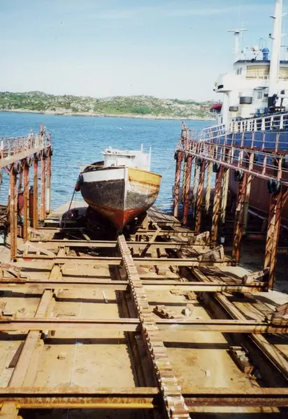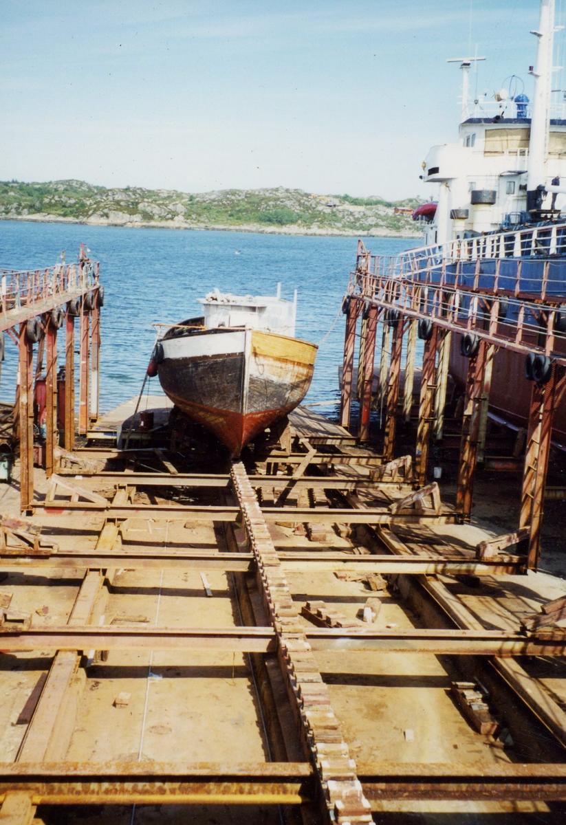 Følgende ble skiftet: Samtlige rekkestøtter, rekkeplatt, skansekledning, hele skandekket i full lengde, samt en del hudplank over vann.